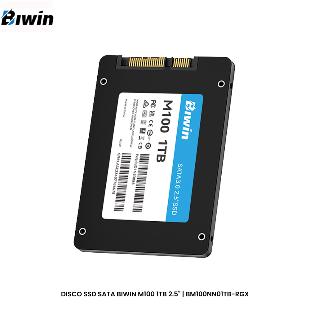 El SSD Biwin M100 de 1TB es una solución de almacenamiento confiable y eficiente para mejorar el rendimiento de tu PC o laptop. Gracias a su interfaz SATA III de 6.0Gb/s, este disco sólido ofrece velocidades de lectura y escritura que agilizan el arranque del sistema, la carga de aplicaciones y la transferencia de archivos.